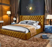 King Size Bed with Frame - Super Royal Bed Frame by Sapphire Furniture LTD, Luxurious Comfort and Style. With its luxurious plush velvet finish and stunning headboard, this bed will elevate your sleep experience to new heights and bring a touch of luxe to every bedroom décor. The Super Royal Small Double Bed Frame is the ideal bed frame for even the most discerning buyer looking to take their bedroom to the next level, featuring durable hardwood construction and a beautiful design.